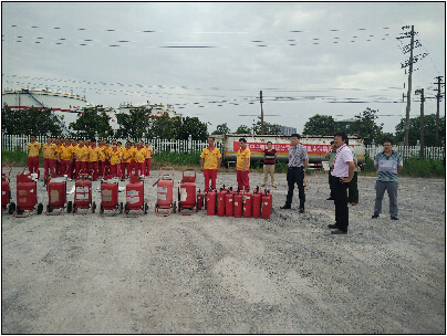 上午8:30演練準(zhǔn)時(shí)開始,消防官兵對(duì)各種滅火器具的使用進(jìn)行專業(yè)講解和操作演示。演練項(xiàng)目包括初起火災(zāi)撲救、模擬發(fā)油臺(tái)提油車輛發(fā)油過程中著火撲救、庫(kù)區(qū)儲(chǔ)油大罐火災(zāi)撲救,演練持續(xù)2個(gè)小時(shí).整個(gè)演練過程指揮有力、分工明確、配合默契、實(shí)戰(zhàn)氛圍濃厚。期間,在總公司物流中心領(lǐng)導(dǎo)及油庫(kù)管理人員的陪同下,安監(jiān)局陳局長(zhǎng)還實(shí)地察看了油庫(kù)的安全監(jiān)控系統(tǒng),詢問油庫(kù)安全生產(chǎn)工作各項(xiàng)措施的落實(shí)情況。